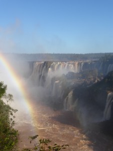 Hostel und machten uns dann gleich auf zu den Iguaza-Wasserfällen: 257 Wasserfälle zwischen Brasilien und Argentinien. Wasserfälle über Wasserfälle rauschen kreuz und quer und übereinander in die Tiefe. Ein unbeschreiblicher Anblick!! Das Highlight ist der sogenannte „Devils Throat“, der größte Wasserfall von allen. Auf einem Steg kann man direkt vor ihn laufen, während unter einem weitere Wasserfälle entlangrauschen. Der Wahnsinn!