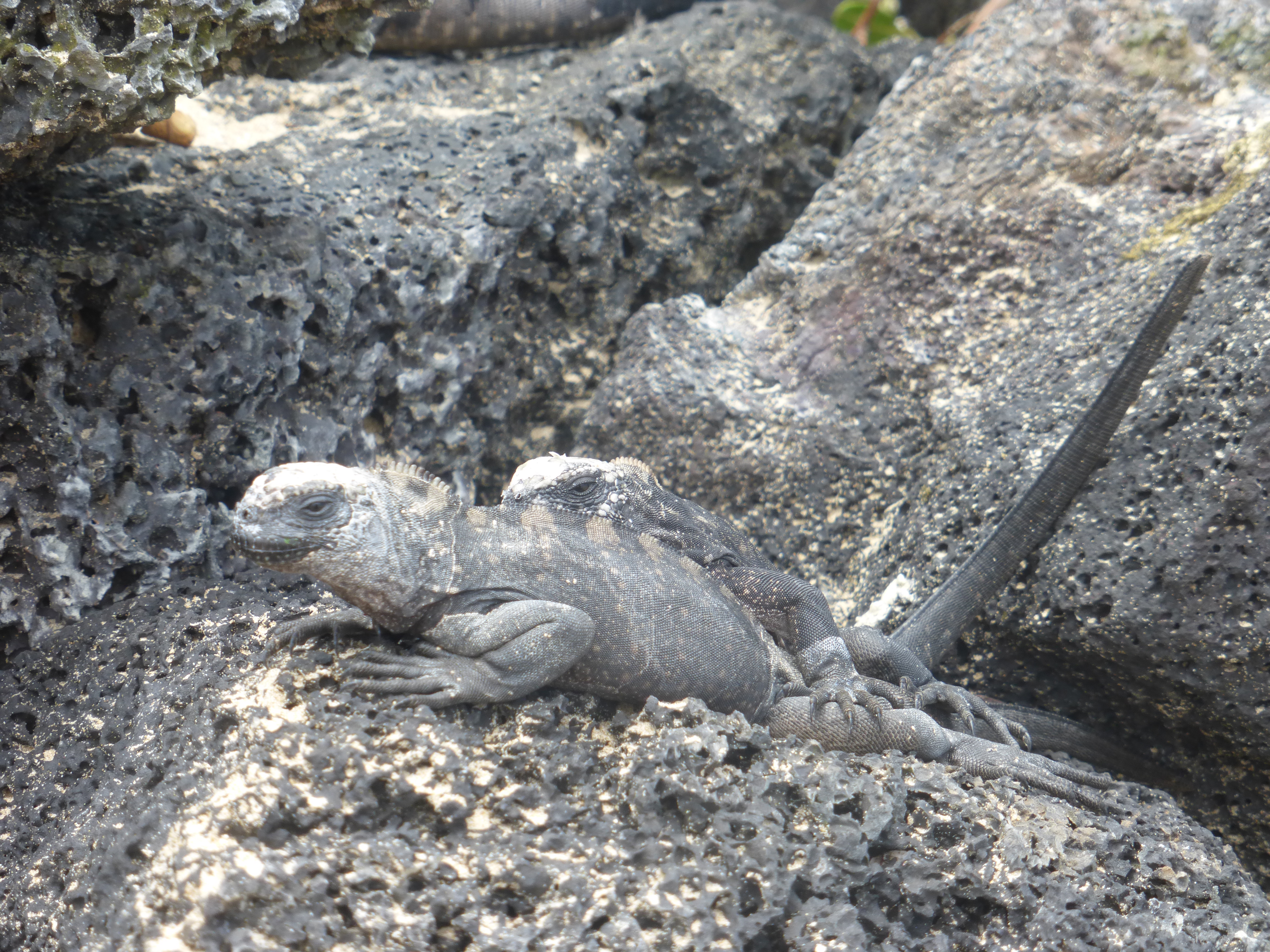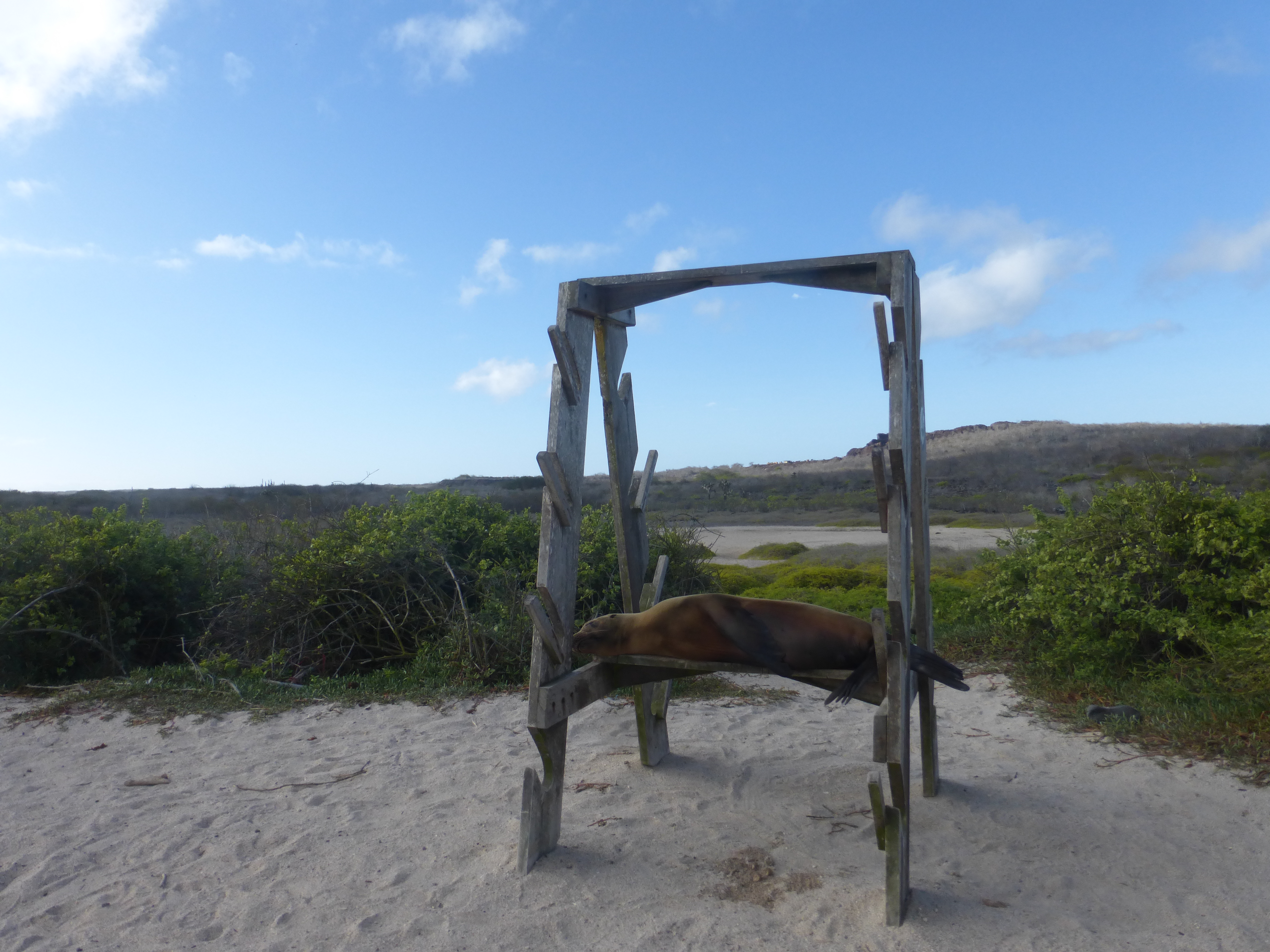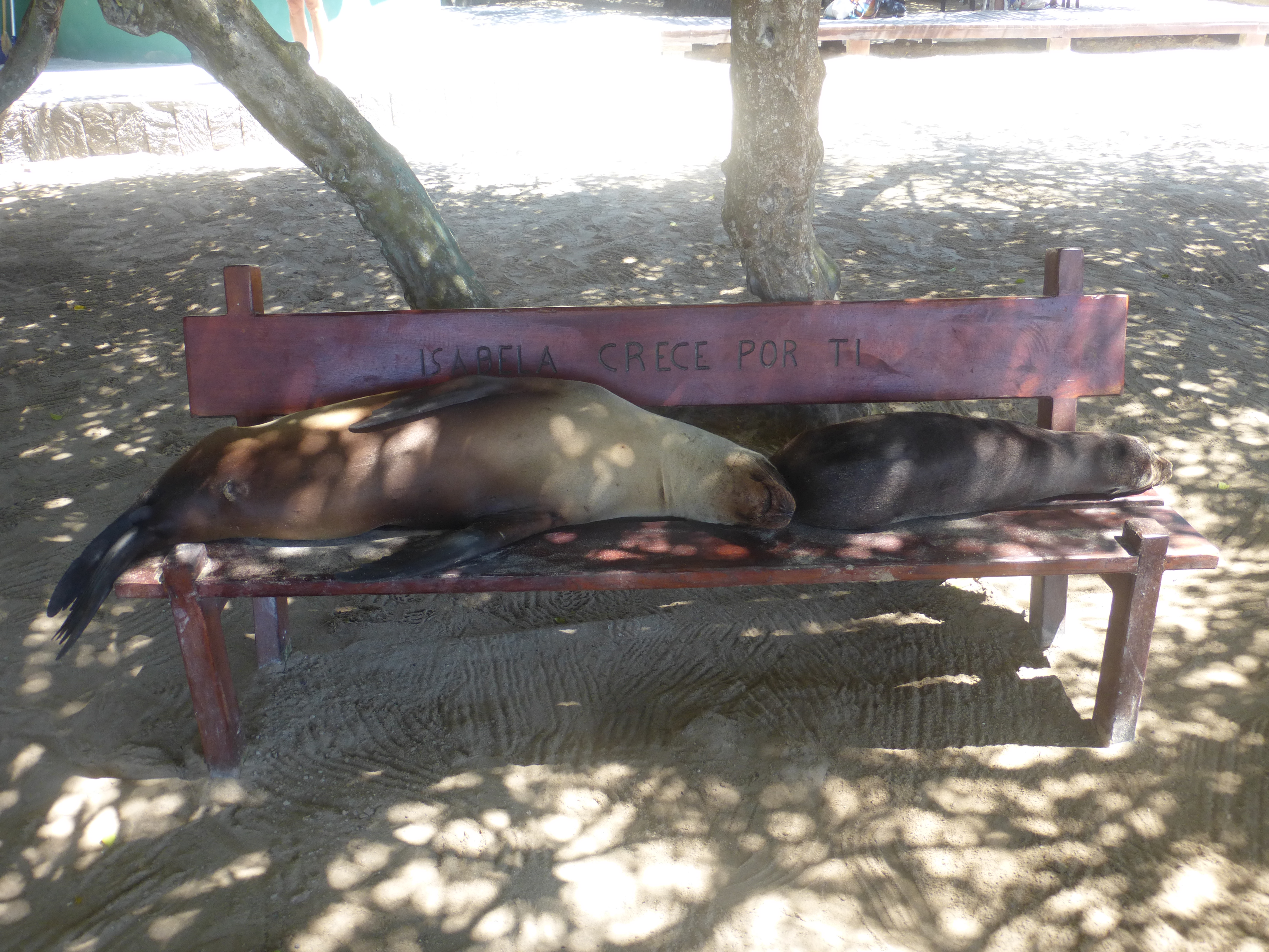 Wie war es also? Absolut fantastisch! Wir haben Dinge gesehen, die ich in meinem Leben noch nicht gesehen habe, wovon es vieles nirgendwo anders auf der Welt zu sehen gibt. Einzigartige Strände, wackelige Bootsfahrten auf riesigen Wellen, Wandern durch die Highlands, Klettern durch Lavatunnel und Schnorcheln im pazifischen Ozean. Aber das Highlight für mich waren die Tiere! Ich fange einmal mit den Seehunden an. Ich, die schon auf einer Schiffsfahrt nach Föhr total begeistert ist, wenn ich Seehunde auf einer weit entfernten Sandbank entdecke, war hin und weg, was sich mir auf den Galápagos-Inseln bot: Seehunde, wohin man nur sieht. Sie sind im Wasser und am Land, chillen an Stränden und auf Bänken in der Stadt. Und zwar nicht vereinzelt, sondern in Scharen. Aber wehe, man kommt ihnen allzu nahe, dann fauchen sie und zeigen ihre Zähne. Neben den Seehunden findet man aber noch etliches anderes Getier an Land vor: Meeresechsen (diese gibt es nirgendwo anders auf der Welt), andere etliche Art von Echsen, Krebse in allen verschiedenen Farben, Pinguine, Flamingos, Pelikane, tausende andere Arten von Vögeln wie z.B. die endemischen Darwin-Finken, Landschildkröten in klein und in sehr, sehr groß, etc. etc. etc. Man läuft den Strand entlang und vor einem sonnt sich ein Seehund, auf ihm sitzt ein Finke, ein Meter von ihnen entfernt liegt eine Meeresechse – der Wahnsinn. Und man gewöhnt sich so schnell daran. Während ich die ersten Tage noch regelrecht ausgeflippt bin, wenn ich mal wieder einer Meeresechse oder einem Seehund begegnet bin, so wurde es nach einer Zeit schon ganz normal und Teil des Alltags.