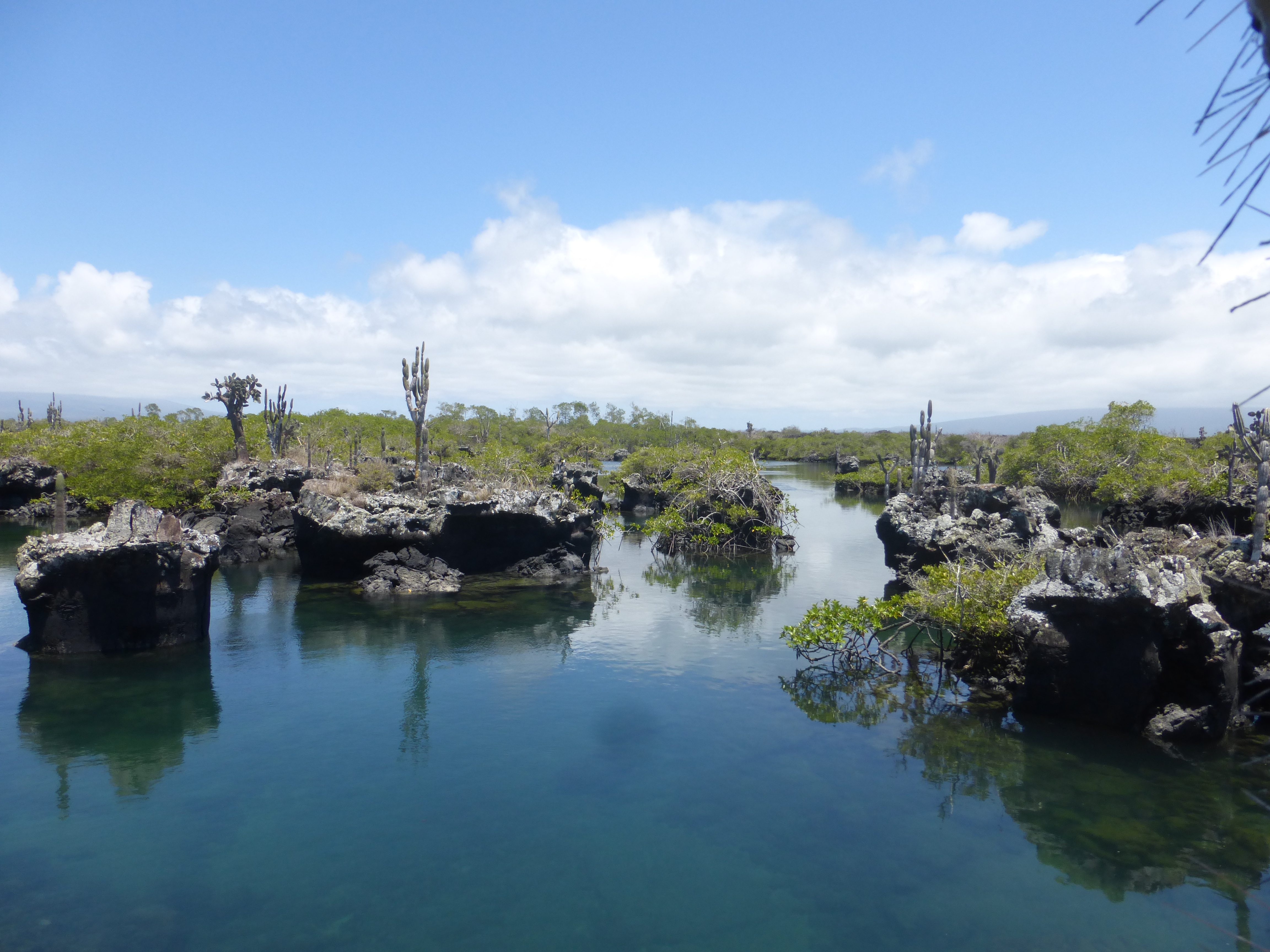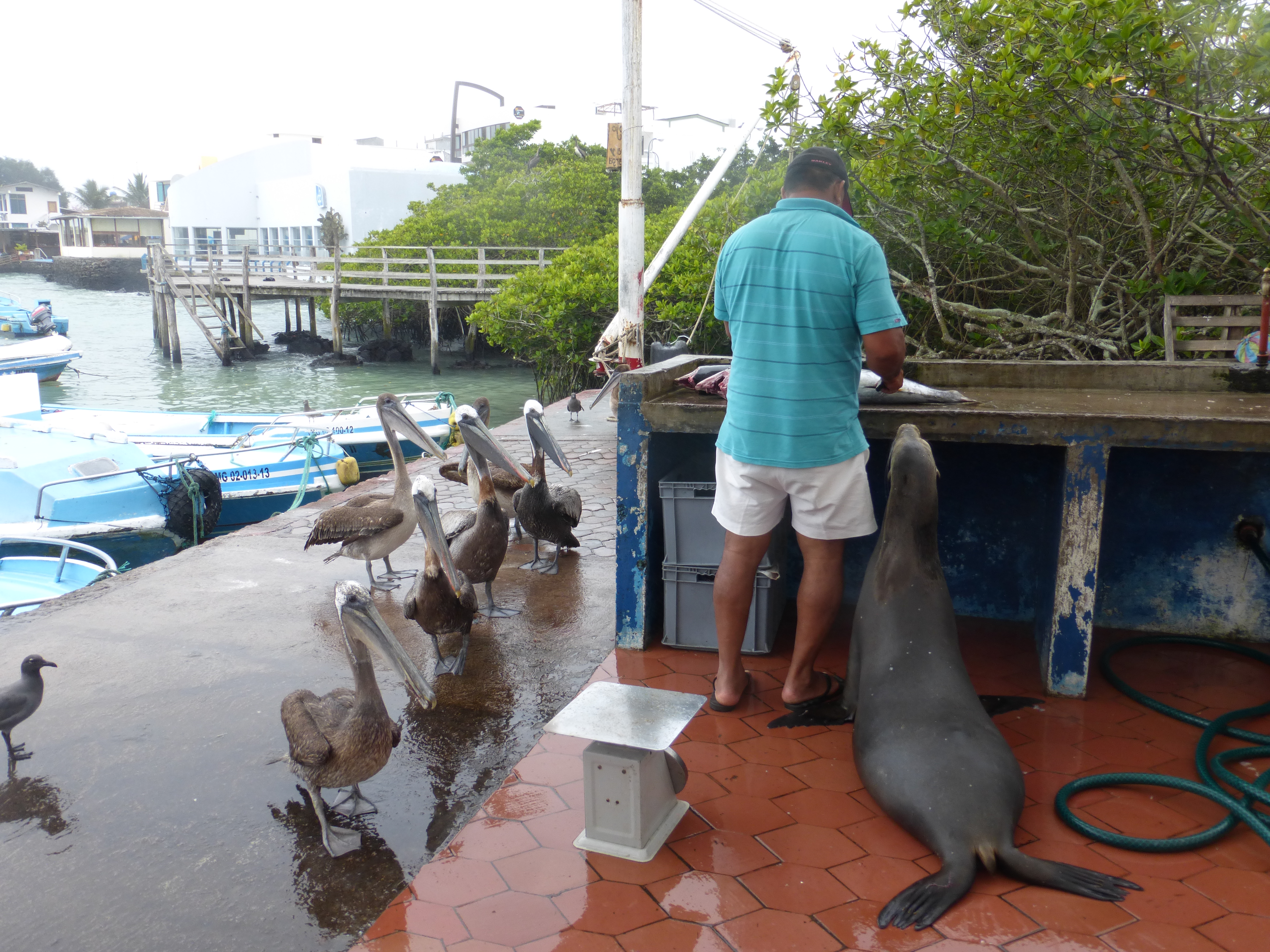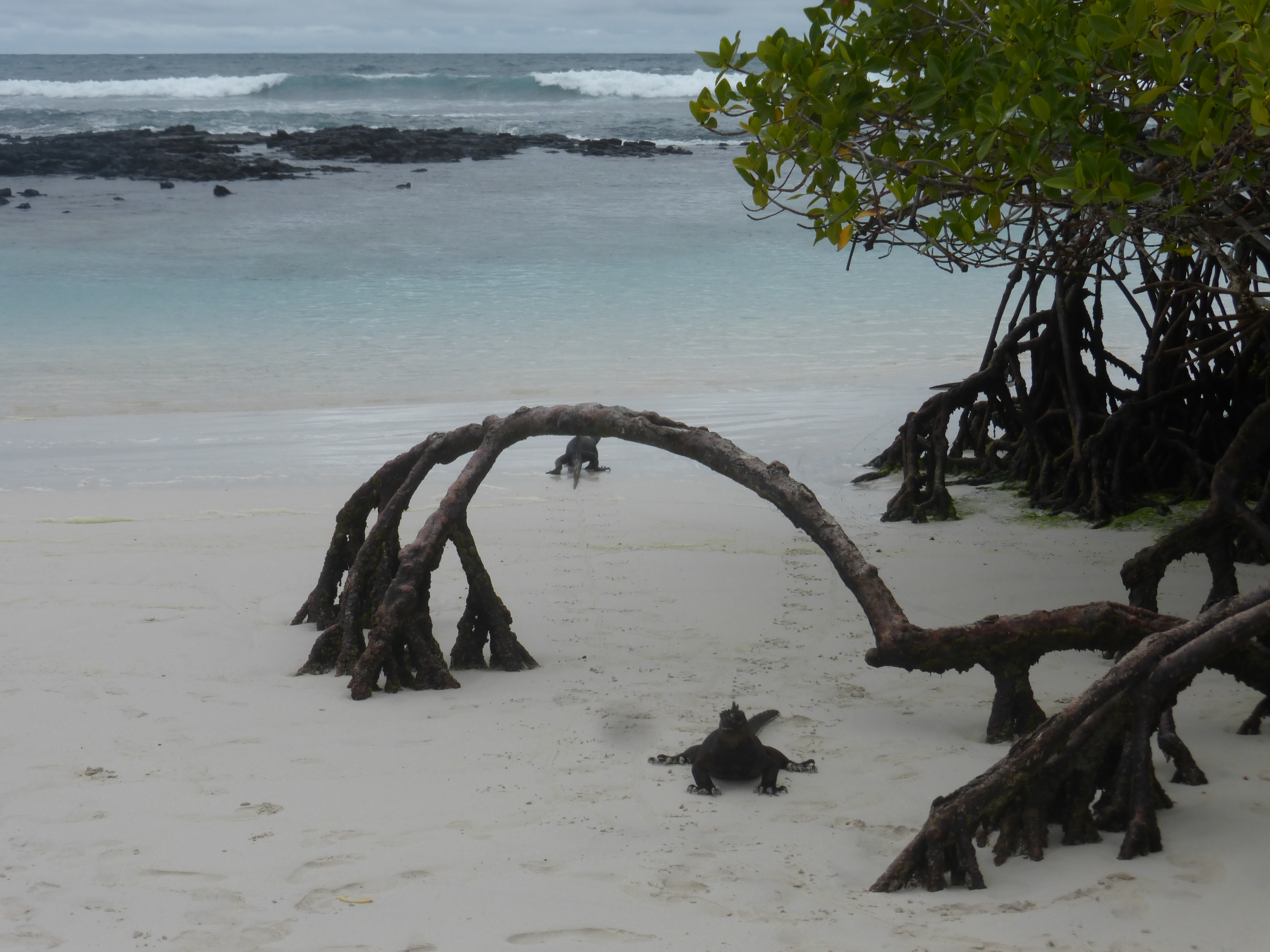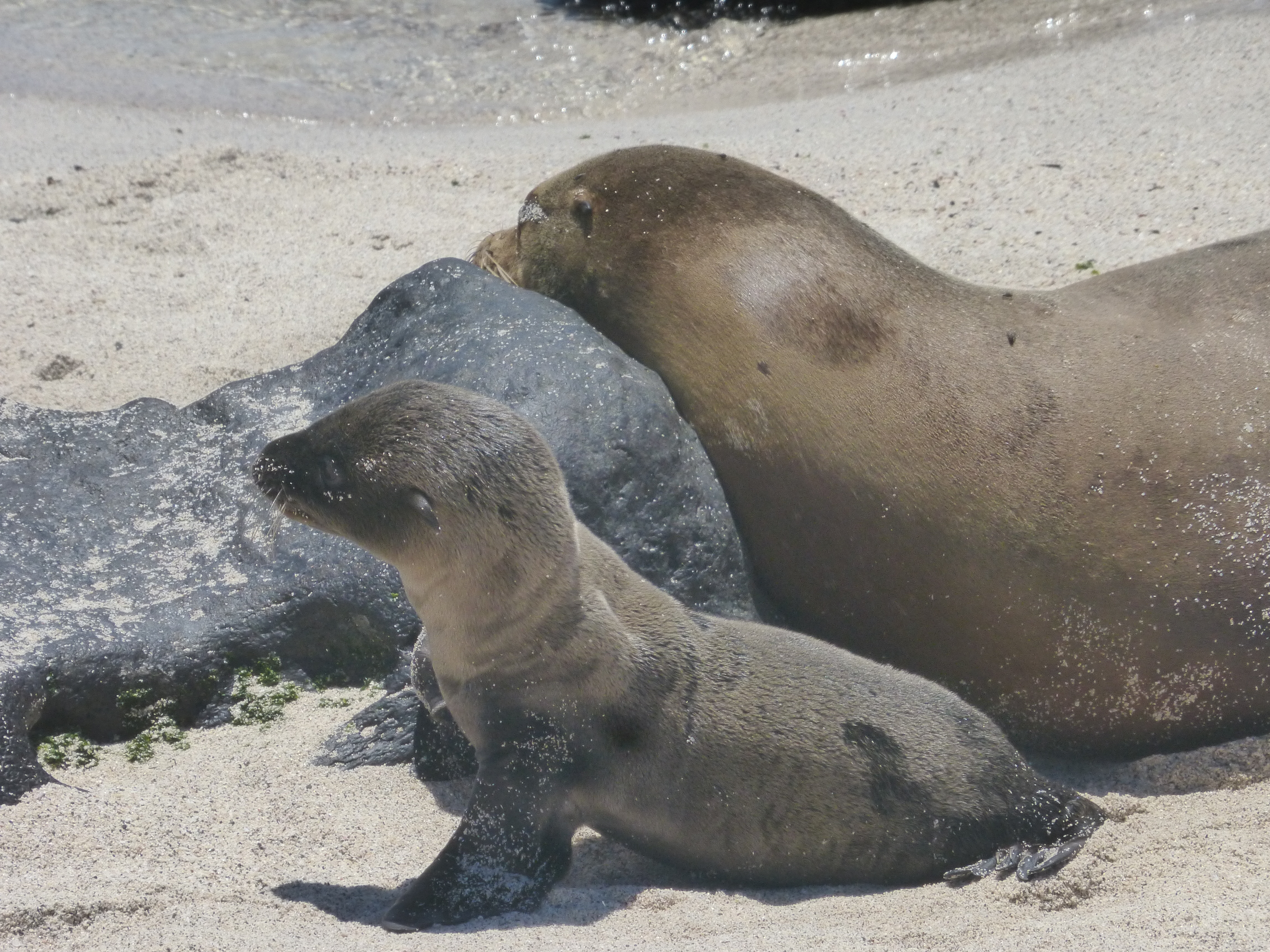 Wie war es also? Absolut fantastisch! Wir haben Dinge gesehen, die ich in meinem Leben noch nicht gesehen habe, wovon es vieles nirgendwo anders auf der Welt zu sehen gibt. Einzigartige Strände, wackelige Bootsfahrten auf riesigen Wellen, Wandern durch die Highlands, Klettern durch Lavatunnel und Schnorcheln im pazifischen Ozean. Aber das Highlight für mich waren die Tiere! Ich fange einmal mit den Seehunden an. Ich, die schon auf einer Schiffsfahrt nach Föhr total begeistert ist, wenn ich Seehunde auf einer weit entfernten Sandbank entdecke, war hin und weg, was sich mir auf den Galápagos-Inseln bot: Seehunde, wohin man nur sieht. Sie sind im Wasser und am Land, chillen an Stränden und auf Bänken in der Stadt. Und zwar nicht vereinzelt, sondern in Scharen. Aber wehe, man kommt ihnen allzu nahe, dann fauchen sie und zeigen ihre Zähne. Neben den Seehunden findet man aber noch etliches anderes Getier an Land vor: Meeresechsen (diese gibt es nirgendwo anders auf der Welt), andere etliche Art von Echsen, Krebse in allen verschiedenen Farben, Pinguine, Flamingos, Pelikane, tausende andere Arten von Vögeln wie z.B. die endemischen Darwin-Finken, Landschildkröten in klein und in sehr, sehr groß, etc. etc. etc. Man läuft den Strand entlang und vor einem sonnt sich ein Seehund, auf ihm sitzt ein Finke, ein Meter von ihnen entfernt liegt eine Meeresechse – der Wahnsinn. Und man gewöhnt sich so schnell daran. Während ich die ersten Tage noch regelrecht ausgeflippt bin, wenn ich mal wieder einer Meeresechse oder einem Seehund begegnet bin, so wurde es nach einer Zeit schon ganz normal und Teil des Alltags.