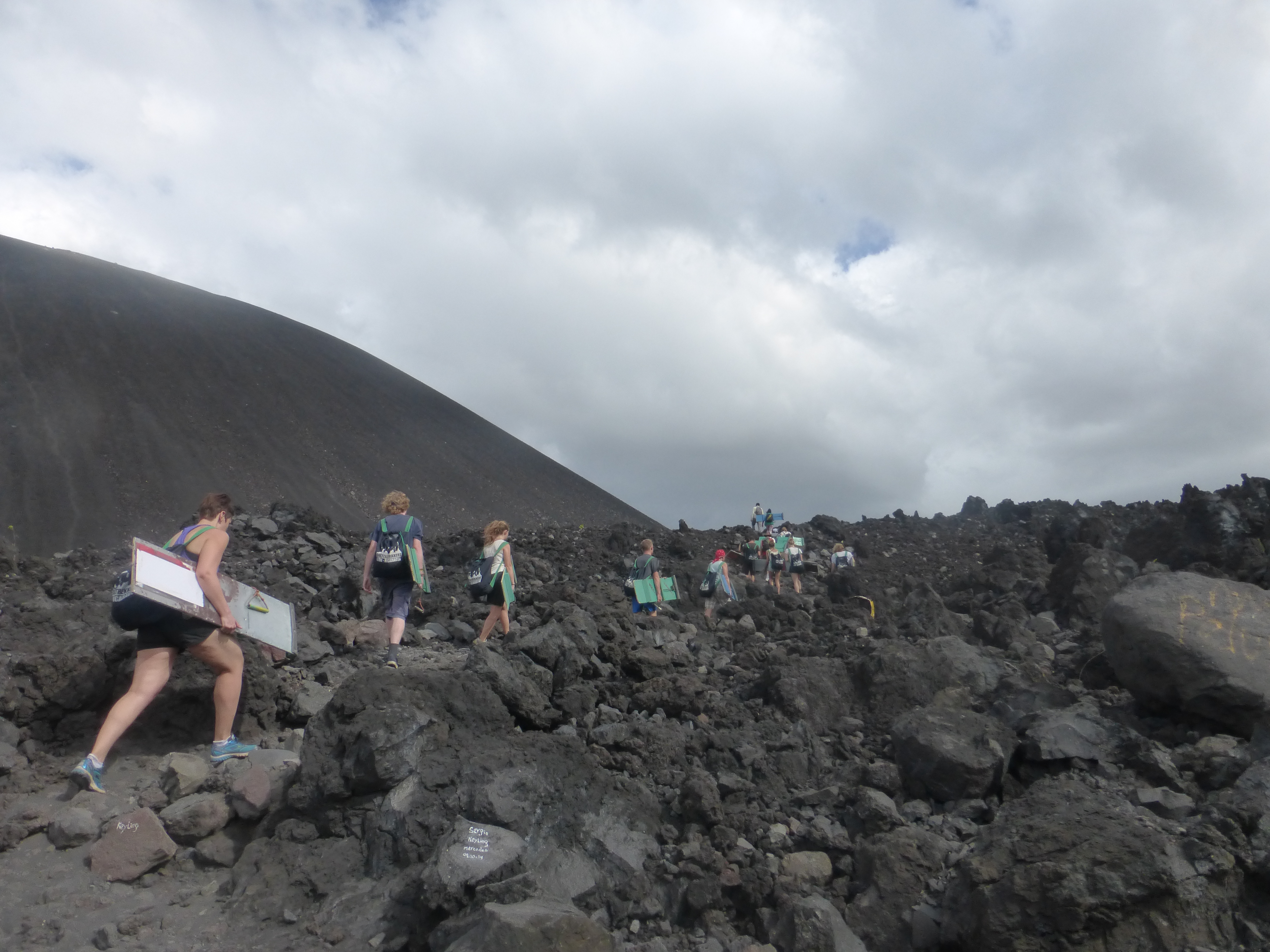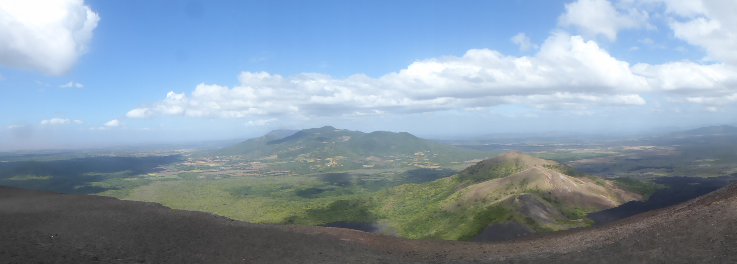 Ein paar Tage später verabschiedeten wir uns dann von der Insel (ein Ort, der definitiv einer meiner bisher liebsten Orte auf dieser Reise war) und machten uns auf den Weg nach León. Dort hatten wir via Email einen Job in einem Hostel bekommen. Job bedeutete in diesem Fall: Unterkunft und Essen for free, im Gegenzug arbeiten wir dafür ein paar Stunden im Hostel hinter der Bar. Leider stellten wir jedoch schnell fest, dass wir für die vielen Stunden, die wir arbeiten sollten, recht wenig im Gegenzug bekamen: mindestens acht Stunden fünf Tage die Woche arbeiten für eine Matratze auf dem Boden und Frühstück – nein danke. Da arbeite ich doch tausendmal lieber länger in Afrika und tue damit wirklich etwas Gutes. Wir entschieden uns also am Neujahrsmorgen, dass es der Deal nicht wert ist (…obwohl der Silvesterabend wirklich lustig war. Ach und in diesem Sinne: Frohes Neues euch allen!) und zogen in ein anderes Hostel. Denn bevor wir León verlassen konnten, gab es noch eine Sache, die wir unbedingt tun mussten: Volcano Boarding! Jetzt fragt ihr euch sicher, was bitteschön ist das denn. Es ist genau das, wonach es sich anhört: Man boardet einen Vulkan hinunter. Eine Stunde von León entfernt gibt es einige Vulkane, einer von ihnen ist der Cerro Negro, der „schwarze Hügel“. Mit einem Holzboard unter dem Arm erklimmt man 45 Minuten lang den Vulkan, bis man an der Spitze angelangt ist. Ach, und wir sprechen hier von einem aktiven Vulkan. Dann steigt man in die Schutzkleidung bestehend aus Anzug, Handschuhen und Schutzbrille, setzt sich auf sein Board und fährt auf dem Board sitzend den Vulkan hinunter. Der absolute Knaller! Der Geschwindigkeitsrekord liegt bei um die 90 km/h. Selbst wenn man nicht eine so hohe Geschwindigkeit erreicht: Das Gefährliche an der ganzen Sache ist, dass man auch bei geringer Geschwindigkeit die Balance verlieren und sich überschlagend vom Board fallen kann. Von kleinen Kratzern über geschwollenes Gesicht bis hin zu Krankenhausabtransport ist schon alles passiert. Tatsächlich kam, während wir dort waren, für ein Mädchen einer anderen Gruppe der Krankenwagen. Aber das ist dennoch die Ausnahme. Denn man kann durchaus beeinflussen, wie schnell man wird. Als ich zum ersten Mal hinunterfuhr, habe ich zu Beginn der Abfahrt mit meinen Füßen gebremst, aus Angst zu schnell zu werden. Das Resultat: Ich war recht langsam und konnte, als ich es wollte, keine höhere Geschwindigkeit aufbauen. Unten angekommen war ich dann durchaus ein wenig enttäuscht, da die Abfahrt dann doch nicht so spektakulär war wie erhofft. Als die Frage gestellt wurde: „Möchte jemand noch ein zweites Mal hinauf?“ war ich sofort mit dabei. Und das, obwohl ich mir beim ersten Aufstieg gedacht hatte: „Diesen Weg hier hinauf mache ich bestimmt nicht noch einmal!“ Aber mit der verschwundenen Angst vor der Abfahrt und dem Wunsch nach einem richtigen Adrenalinkick nahm ich einen erneuten Vulkanaufstieg liebend gern in Kauf. Hätte ich gewusst, was mich bei diesem zweiten Aufstieg erwartet, wer weiß, ob ich nochmal hinaufgewandert wäre.
