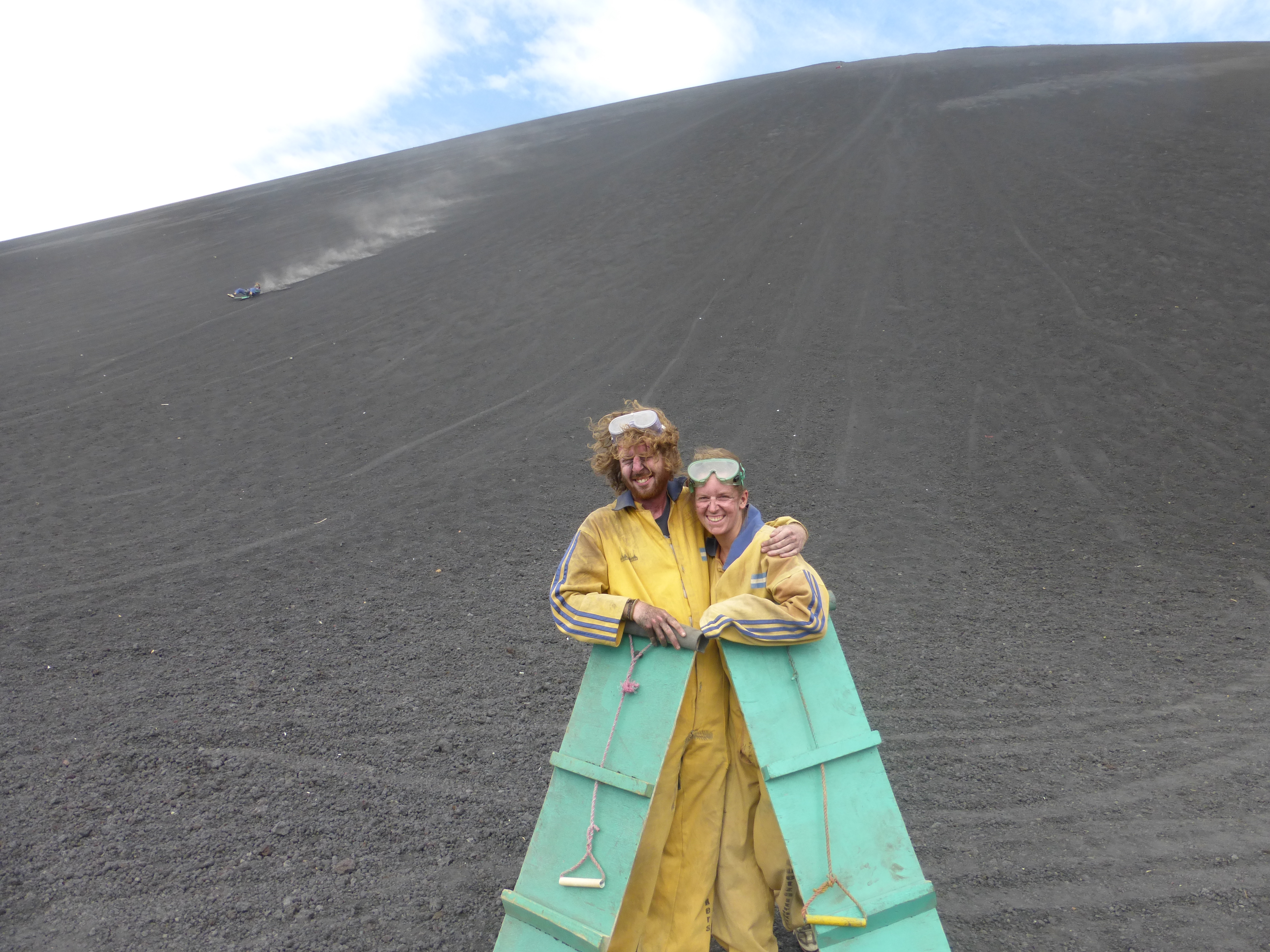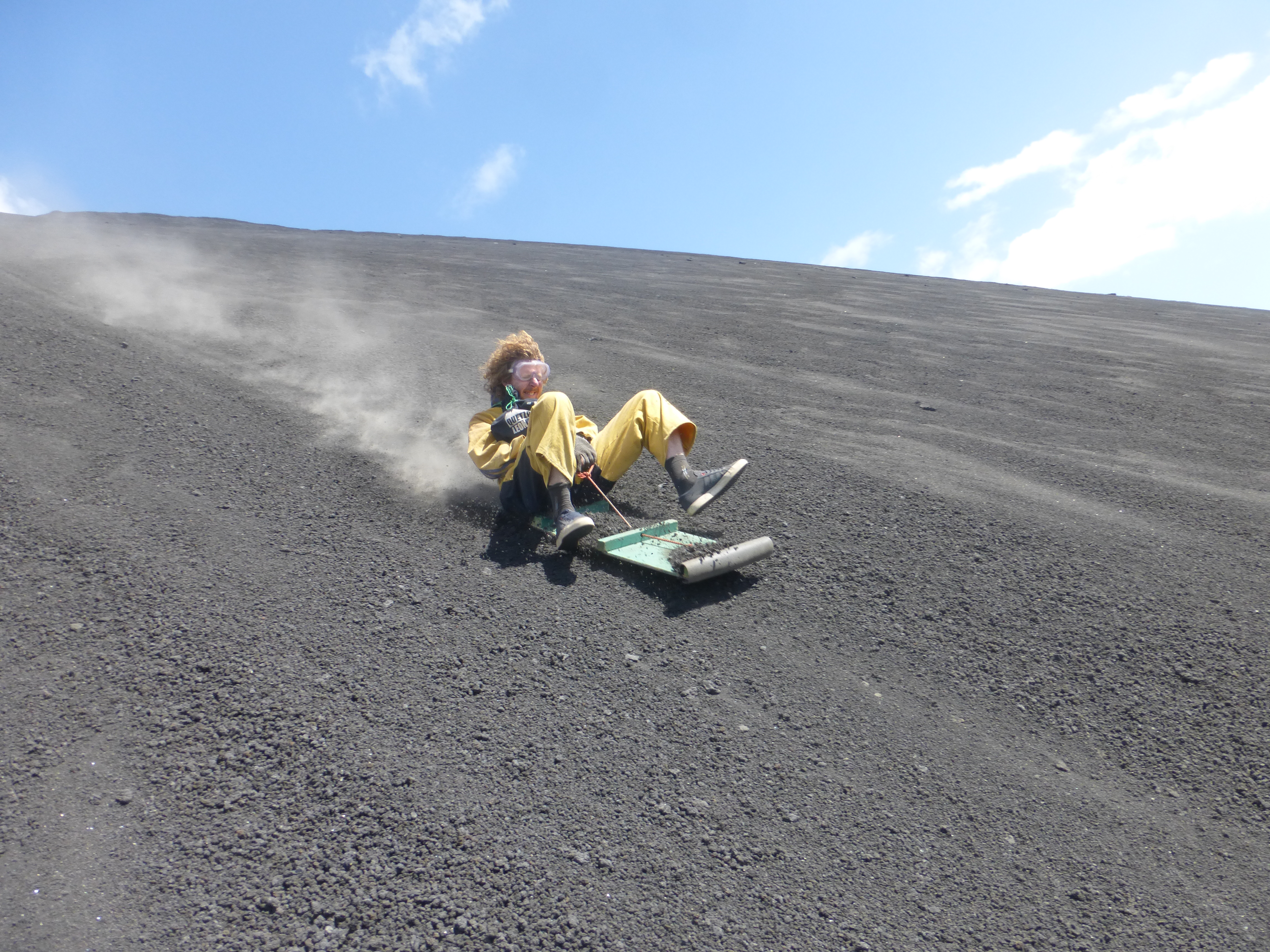 Erschöpft, aber glücklich nach gelungenem Volcanoboarding