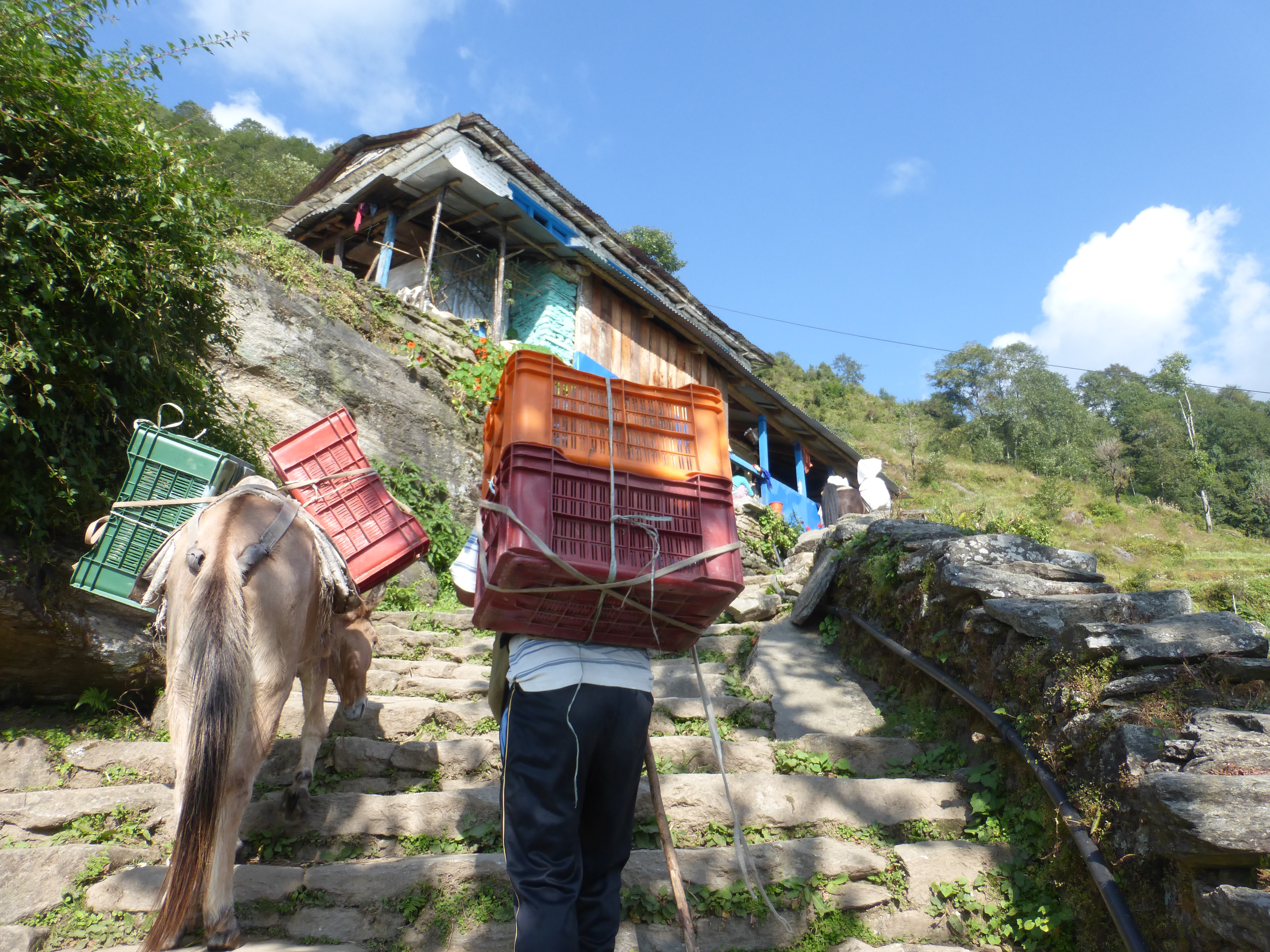 The next day started with – have a guess – oh yes, more steps. They led to a waterfall and into the forest. And it also led us into the rain. A heavy rain that wouldn´t stop for the next hours. Wet and understandably not in the best of moods we arrived in Ghorepani, our stop for the night. Where things turned around: The weather cleared, there was a hot fire and the guesthouse served hot Masala Tea. (Masala Tea is black tea with a lot of milk, sugar and some spices. THE tea to drink in Nepal.)