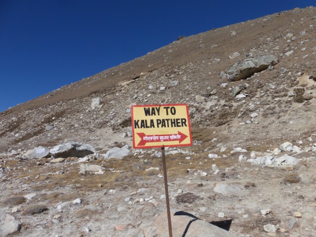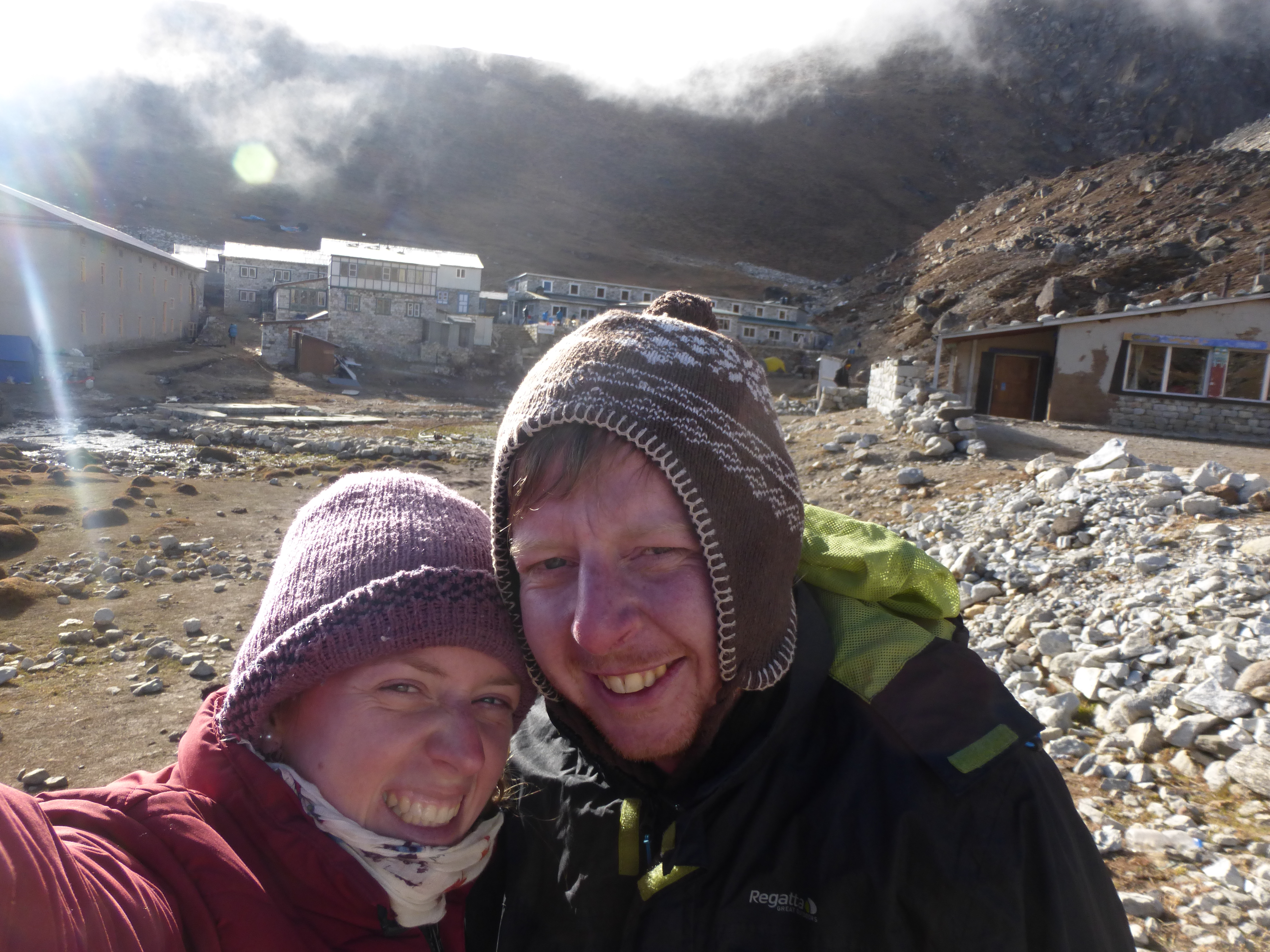 We felt like this was a worthy moment for the second and last Snickers. Probably the best tasting Snickers I have ever had. And then it was picture time. Even though the more travelling I do the less pictures I take – this was definitely a place they had to be taken. We stayed for a little while longer, a few of the highest mountains in the world surrounding us, realizing how small we were compared to the unbelievable size and power of nature. Then it was time to head back. When we reached Gorak Shep we could feel we had done six hours of high altitude walking – I couldn´t wait to sit in the warm teahouse with the biggest pot of tea available. It was all pretty unreal. There we were sitting, sipping a hot brew, and just two hours before we had really been at Base Camp – I couldn´t believe it all. And the journey wasn´t done yet. The next morning we had to conquer one last big hill. Kala Patthar – the viewpoint on 5550 metres from where you were supposed to have the most amazing view over the Himalayas. So we went to bed early (well, as early as always really) and even though we were now sleeping at the highest altitude we had ever spent the night at – I slept better than I had any night before.