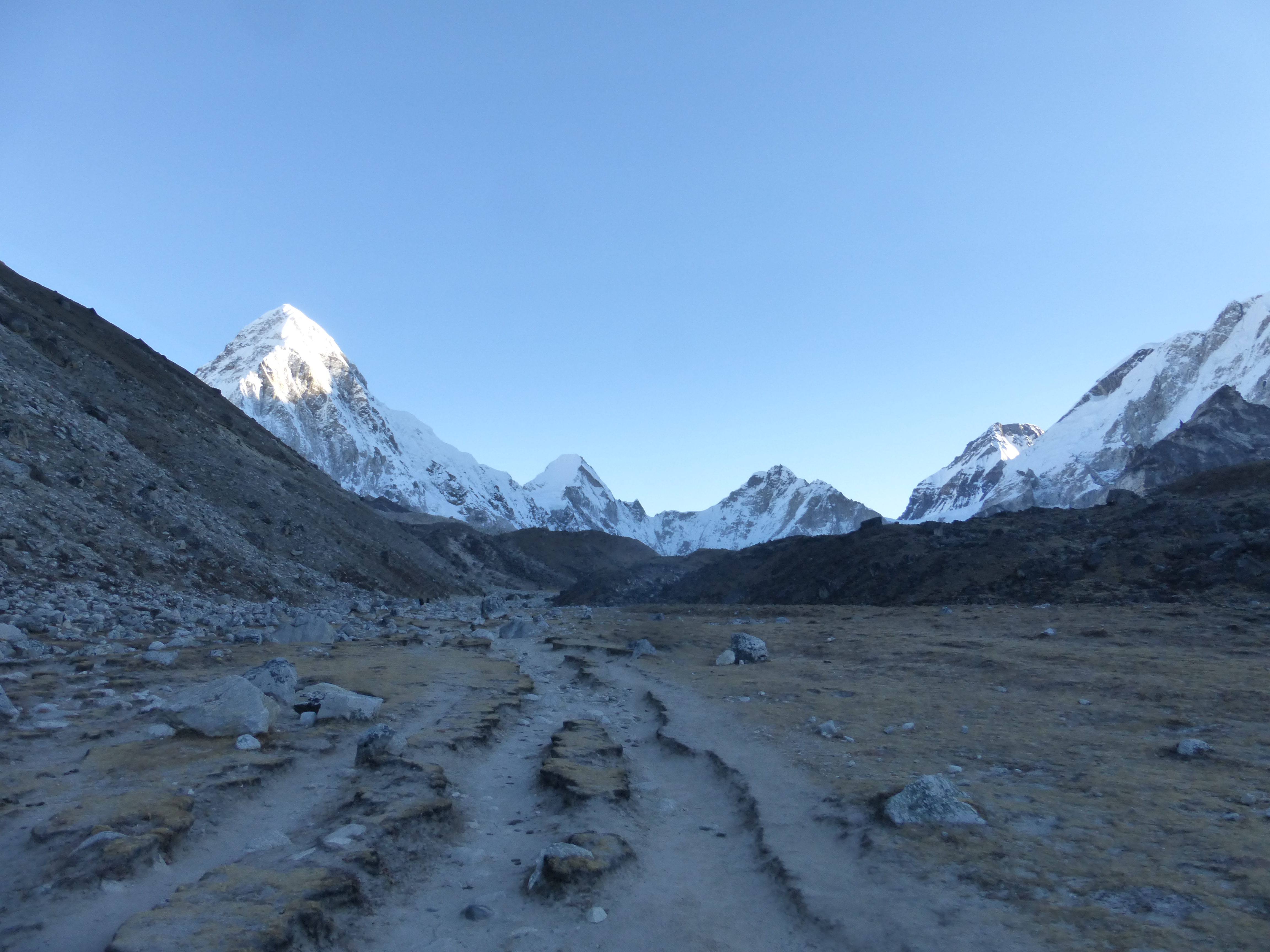 So I walked and walked, slowly but steadily, trying to warm up. After half an hour or so I felt quite thirsty so I grabbed my water bottle which was in a side pocket of my backpack. Only to see that the hole in the bottle had frozen. That´s how cold it was. So no water for me then. Instead I kept on hiking – and coming closer and closer to the next mountain behind which lay Gorak Shep. If you could see the hill now that had to be conquered you would probably laugh and say: “Well it´s not thaaat steep.” True. Exactly what I would have thought. If I would have been at 2000 metres. But I had learned at this part of the journey that altitude really is a thing. And at that moment we were at 5000 metres above sea level. Which meant that getting up this hill would be an absolute nightmare. But I had also learned something else: Get your head down and set one foot in front of the other. Breathe slowly and steadily. And then set one foot in front of the other. So that´s what I did. Well at least for the first 50 steps. Until I had to stop, standing with my hands on my hips, trying to catch my breath. It´s a mad feeling – when you are breathing in, but you can´t actually feel any air entering your body. I started to hike again but with every step I felt weaker and weaker. I had to constantly tell myself (with my inner voice as I definitely didn´t have enough breath to actually speak out loud) to keep on walking. To set one foot in front of the other. My breathing became harder and harder and at one point I felt so exhausted that I couldn´t help myself – I started crying. Well, if there is only one tip I can give you for the next time you are in high altitude: Don´t start crying. Really, just don´t do it. You know why? The next time you cry, pay attention to your breathing. Goes pretty quick and unsteady when you cry, doesn´t it. Not exactly what you want when you´re standing half way up a mountain at 5000 metres. The moment I had started to sob I could feel how breathing got three times worse. I gasped for air but because of the sobbing no air seemed to actually enter my lung. So only a few seconds after I had started crying I told myself to freaking stop it right now. Get yourself together and hike up this damn stupid mountain, Alina.