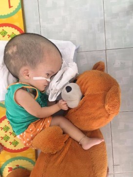 when I started volunteering but lately he started to have a really bad time. From lying in the same position too often, pressure points developed on his skull which caused open wounds on each side of his head. The last couple of weeks he has been unable to lie with the other children as any kind of movement causes him an immense pain. It really is heart breaking to see him lying in his bed in the corner, with his small fists clenched, silently sobbing as the pain must be unbearable. In moments like these you really do feels so helpless. But all we can do is try and make him feel better somehow. One way to do that is to hold a lollipop to his mouth and let him taste it. As the children get fed through a tube this is the only way for them to taste something. Oh, and what a joy it is to watch Minh Hy taste that Lollipop. For thirty minutes of the day he can forget about the pain he is in and enjoy the taste on his tongue. It is just beautiful to see.