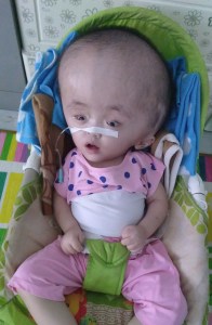Putting Trieu into a bouncer can be hard labour. This girl is heavy! But she is so sweet. For some people Trieu might be the hardest to look at of all the kids as her head is really big and the pupils of her eyes sometimes go behind her eye balls which makes her look a bit scary. But once you get past that you realize how sweet she is. She sleeps with her eyes open and only cries when she can´t digest properly – which luckily happens less and less.