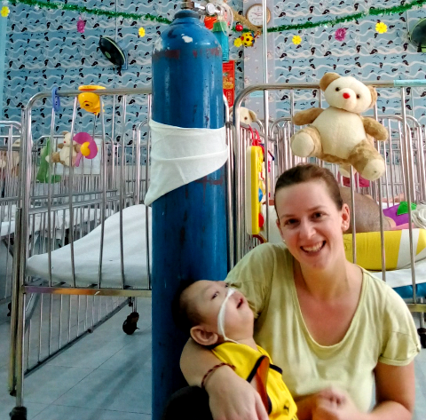 Unfortunately in the world we live in, money rules. And in a poor country like Vietnam it rules even more. As the children´s centre is owned by the government money is a thing that isn´t available. As a result almost everything that the children need is there because of donations. The bouncers are bought from donations. The microfiber pillows that are essential for the kids to lie comfortably without any pain are bought on donations. The clothes they wear, the books we read to them, the baby oil for their massages, even the medicine and dressings are bought from donations. We can give them the love and cuddles they deserve – but for the rest we need you. Every Dollar helps. And I am not just saying that because that´s what you always hear people say, no I am saying it because it`s true.